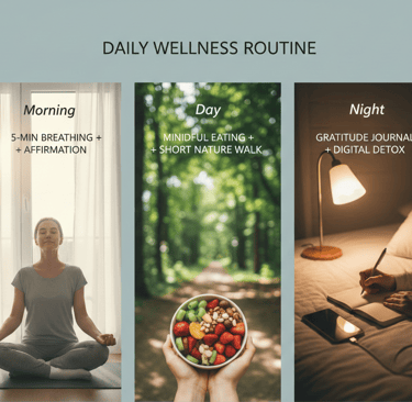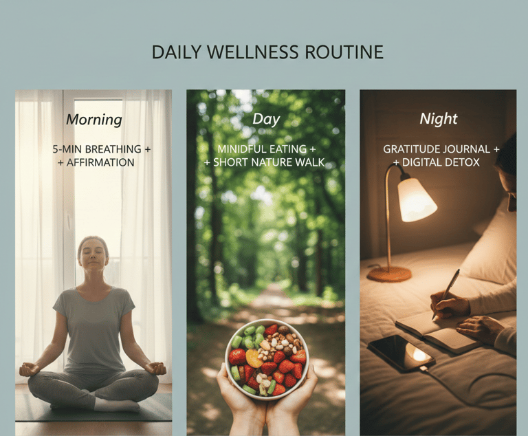 Morning: 5-min breathing + affirmation