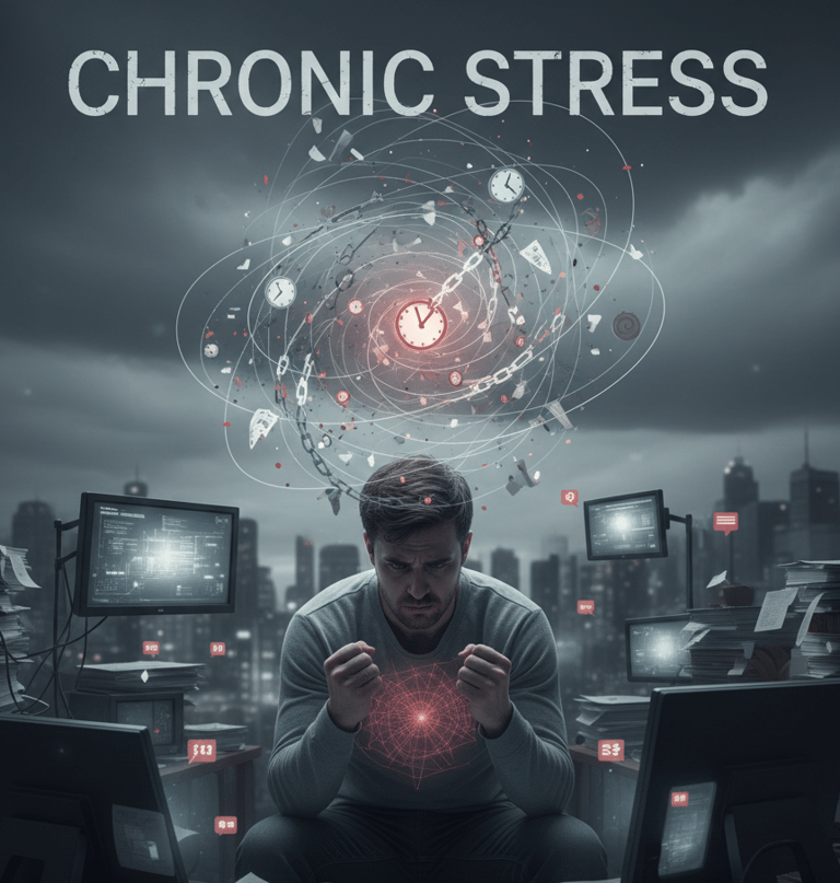 Chronic Stress: Long-term and harmful (toxic work, unhealthy relationships)